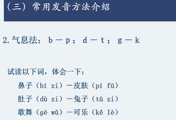 送气音和不送气音可以拿个纸巾或者纸条辅助,选词需要选择有比较性或者对照的词语,这样子不会太枯燥,可以提高课堂的活跃和粘性